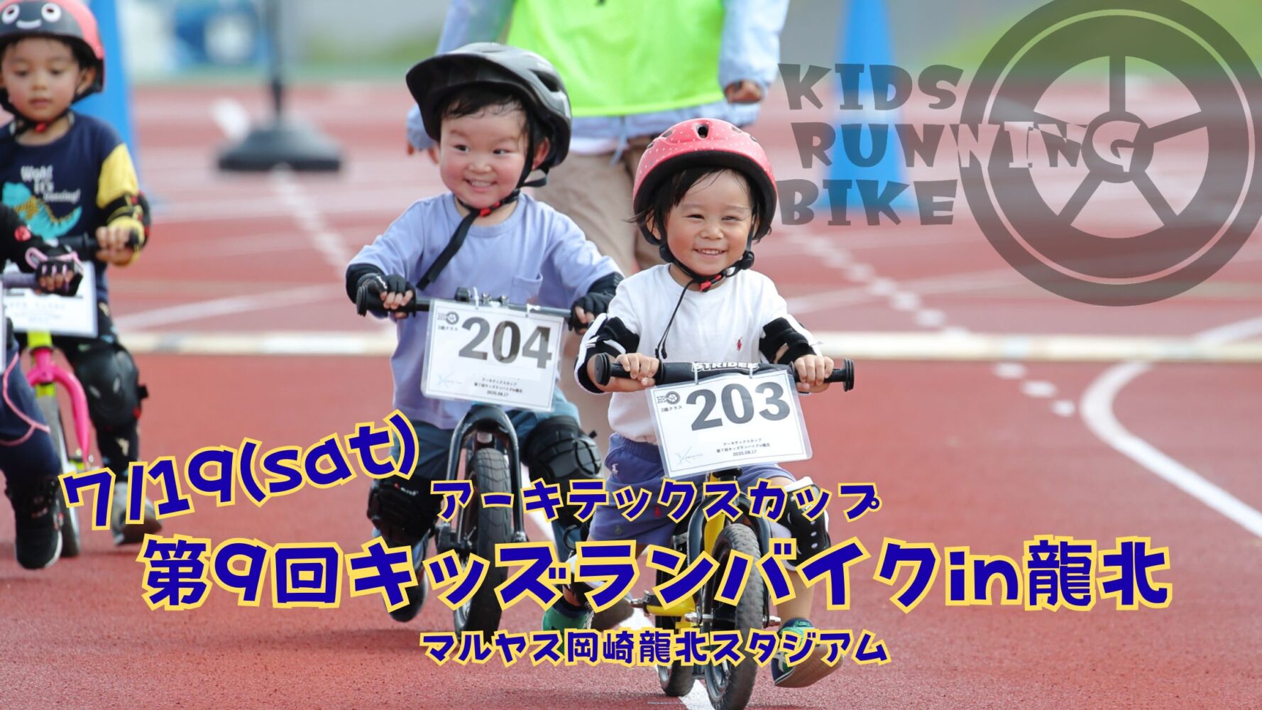 2026年7月19日(日)、マルヤス岡崎龍北スタジアムでランニングバイクレースを開催します。